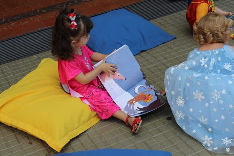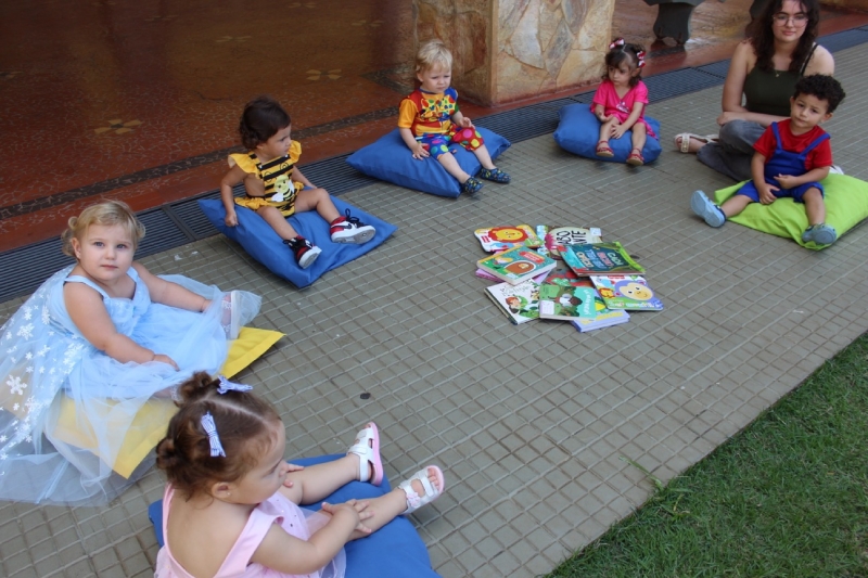Caracterizadas como diferentes personagens, elas mergulharam no universo da fantasia durante a contação de histórias, demonstrando alegria, curiosidade e muita atenção a cada detalhe.