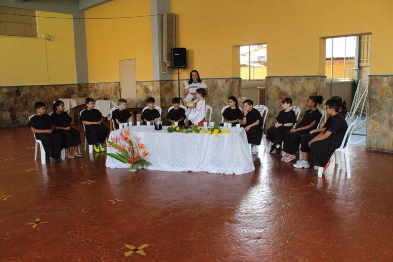 As atividades contaram com encenações preparadas pelos estudantes, que representaram a partilha do pão e a Última Ceia, proporcionando uma experiência significativa de aprendizado e espiritualidade.
