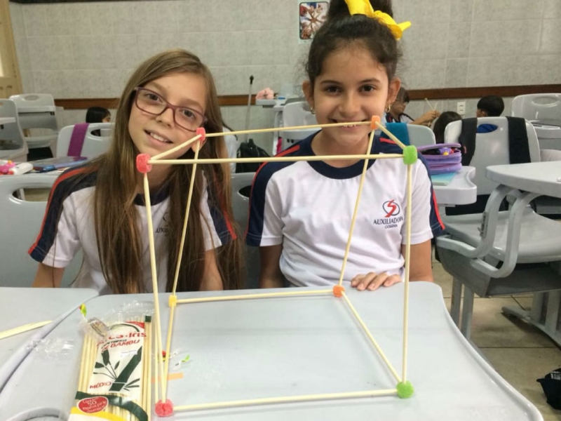 A Professora de Matemática do 6º ano, Sônia Vieira, utilizou atividades lúdicas, escolhendo a técnica com balas de jujuba e palitos de churrasco na construção de esqueletos de poliedros, de modo que as balas representam os vértices e palitos, as arestas. A construção de poliedros se torna fácil e rápida, facilitando seu uso na própria sala durante as aulas. Além disso, o material é de baixo custo e de fácil acesso.