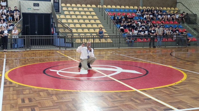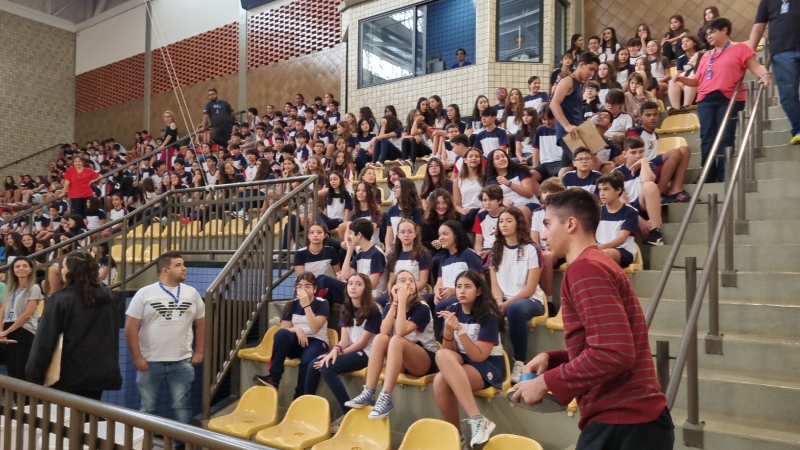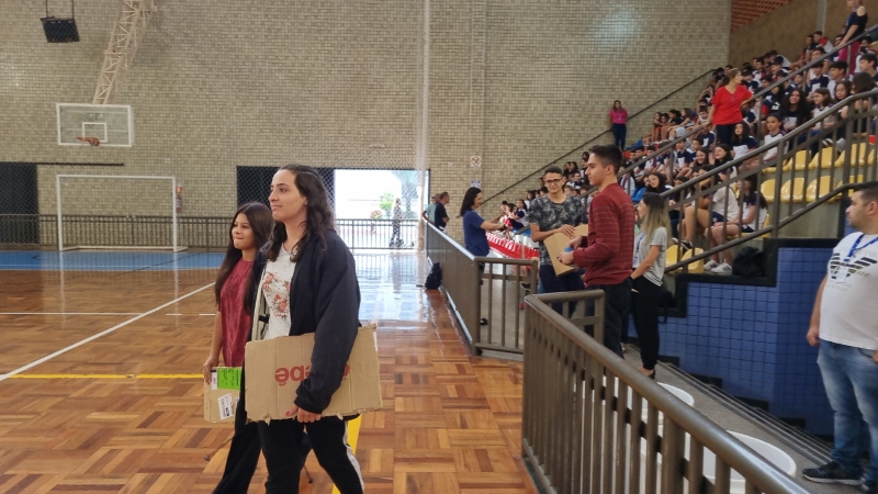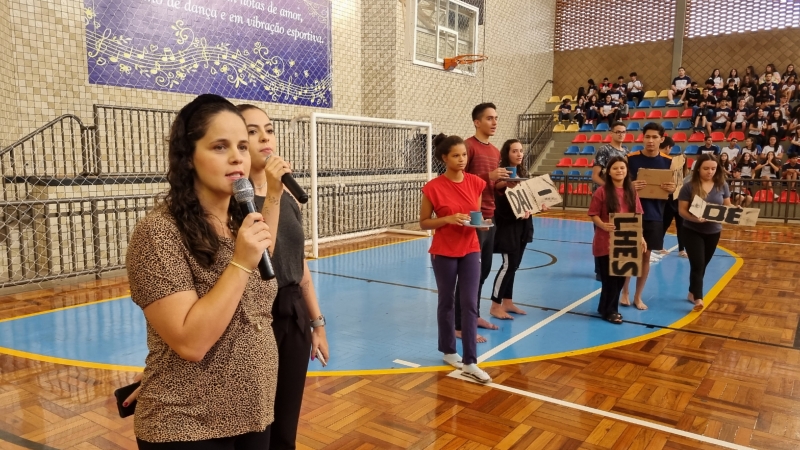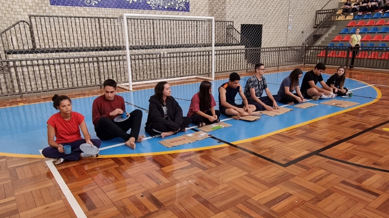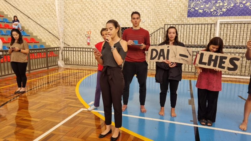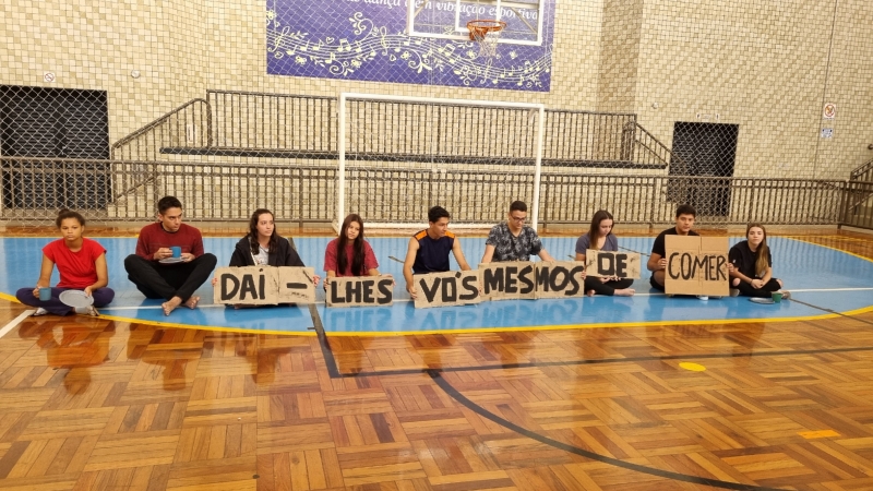 Para sensibilizar os presentes no Ginásio, alguns alunos do 3º ano do Ensino Médio representaram pessoas em situação de fome e, ao som da ORAÇÃO DE SÃO FRANCISCO, carregaram até o centro do Ginásio placas de papelão com os dizeres do lema: "DAI-LHES VÓS MESMOS DE COMER”.