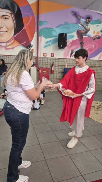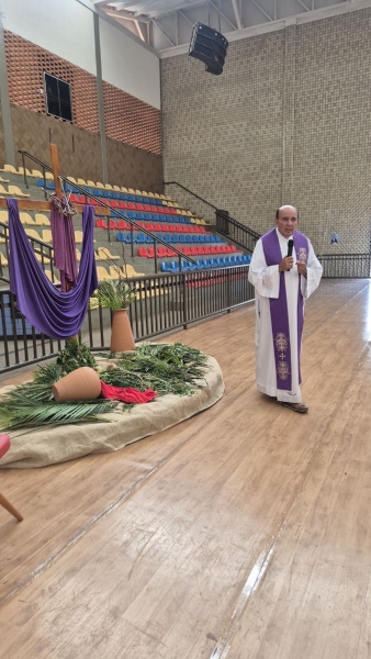 Outro destaque da programação aconteceu na quarta-feira (1º), com o Momento Penitencial conduzido pelo Padre Anchieta. A celebração foi realizada no ginásio da escola e reuniu os estudantes do Ensino Fundamental II e Ensino Médio em um momento de silêncio, reflexão e preparação espiritual para a Páscoa.