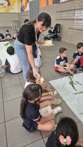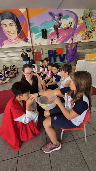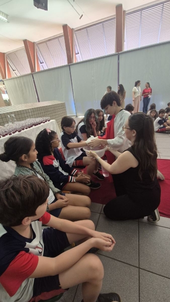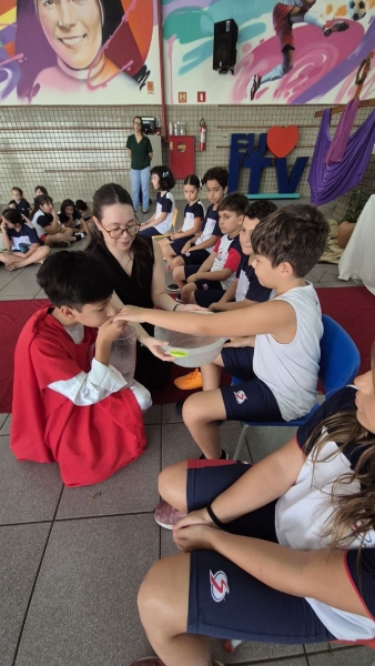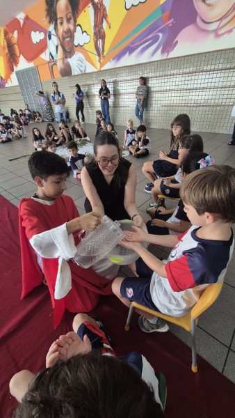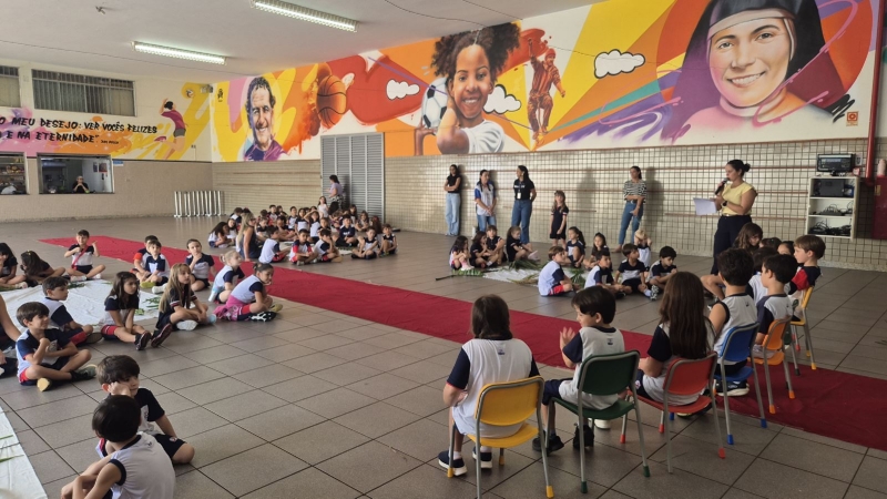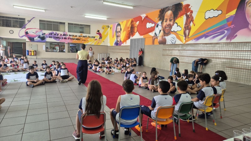 Na terça-feira (31), foi a vez dos estudantes do Ensino Fundamental I aprofundarem a reflexão. Pela manhã, as turmas dos 2º e 3º anos participaram do encontro, que teve continuidade ao longo do período. À tarde, as vivências envolveram os alunos dos 1º, 2º, 3º, 4º e 5º anos, reunidos na área coberta da escola.