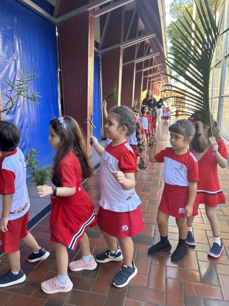 Durante esses momentos, a música “A Semana Santa Começou” acompanhou as atividades com as turmas menores, contribuindo para o clima de acolhida e espiritualidade vivenciado pelos estudantes.