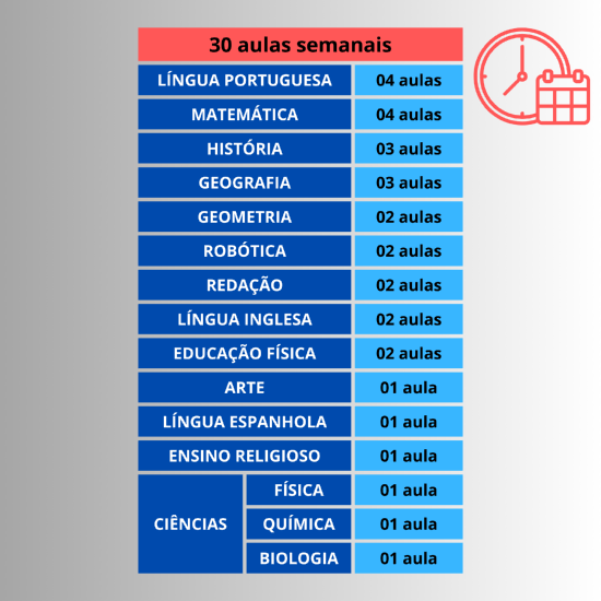 Durante o Ensino Fundamental II, os alunos têm a oportunidade de aprofundar seus conhecimentos em diversos componentes curriculares, como: Língua Portuguesa, Redação, Matemática, Geometria, Ciências (dividida em Física, Química e Biologia), História, Geografia, Robótica, Arte, Língua Inglesa, Língua Espanhola, Educação Física e Ensino Religioso. Cada componente é abordado de forma dinâmica e interativa, estimulando o pensamento crítico, a reflexão, o diálogo e a curiosidade dos estudantes. Além disso, as atividades interdisciplinares promovem a conexão entre diferentes áreas do conhecimento, enriquecendo ainda mais o aprendizado.