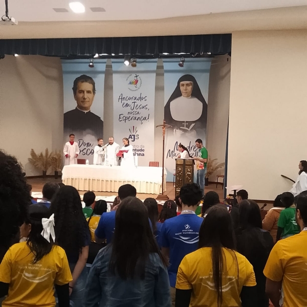 A Celebração Eucarística, presidida pelo Pe. José Paulino, reforçou a presença dos jovens na caminhada com Cristo. E em um momento emocionante, as FMA expressaram gratidão e devoção a Maria cantando juntas “Oh Qual Sorte!”, sinal de união, alegria e identidade como irmãs do Instituto.
