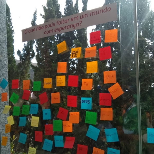 As reflexões dos jovens, registradas em post-its coloridos, deram origem ao “Decálogo da Esperança”, fruto vivo destes quatro dias de convivência e fé.