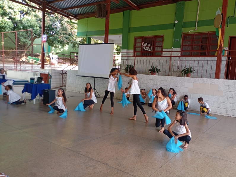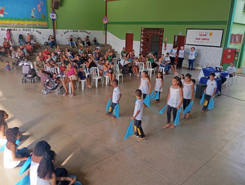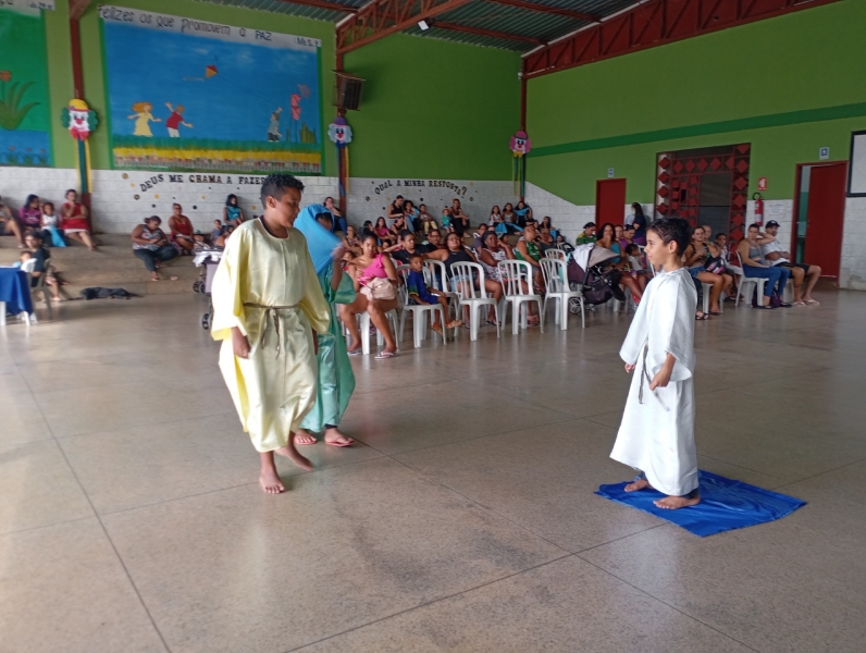 Na acolhida, os educandos, junto à educadora Neomênia, apresentaram a música “Seja Gentil”, preparando o coração de todos para esse momento especial.