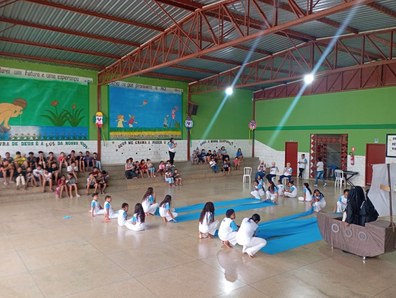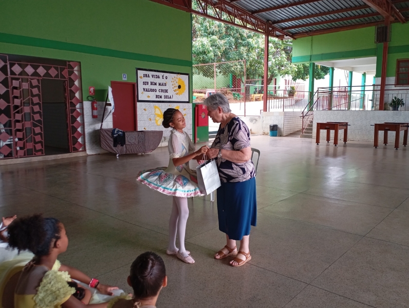 O encontro teve início com uma belíssima apresentação de dança e coral preparada pela educadora Neomênia, Irmã Ana Maria e os educandos. Em seguida, a diretora Ir. Luzia deu as boas-vindas à nossa visitante especial.