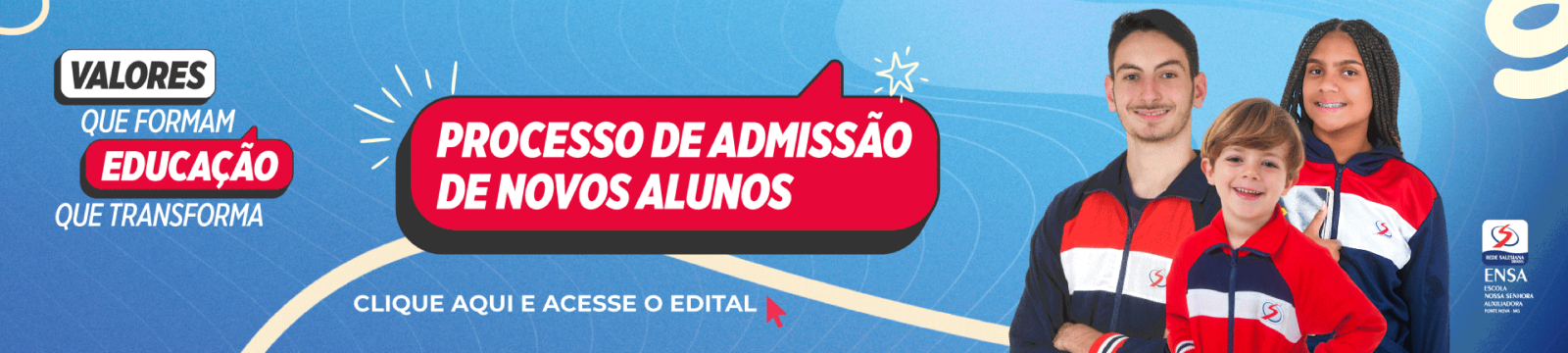 EDITAL DE BOLSA 2026 Carta das Diretoras EDITAL DE MATRÍCULAS 2026 CALENDÁRIO ESCOLAR ENSA Listas de Materiais INSTRUÇÕES PARA COMPRA DO MATERIAL DIDÁTICO DE INGLÊS Guia de compra do material didático de Filosofia - EF Anos Finais