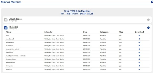 Permite ao aluno visualizar e baixar os arquivos inseridos pelos professores.