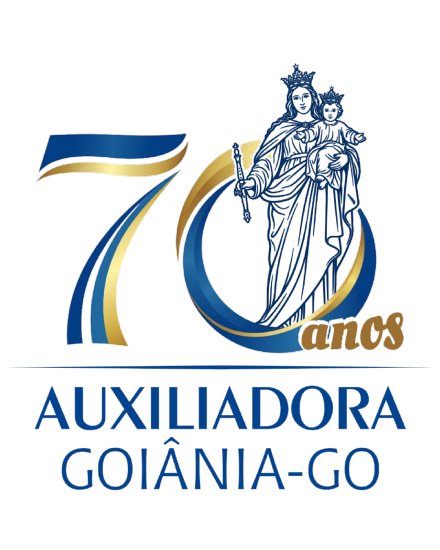 O selo comemorativo dos 70 anos do Instituto Maria Auxiliadora simboliza uma trajetória marcada pela fé, pela educação e pelo compromisso com a formação integral de crianças e adolescentes. O número 70, em destaque, representa sete décadas de presença educativa salesiana em Goiânia, unindo tradição e movimento, passado e futuro.