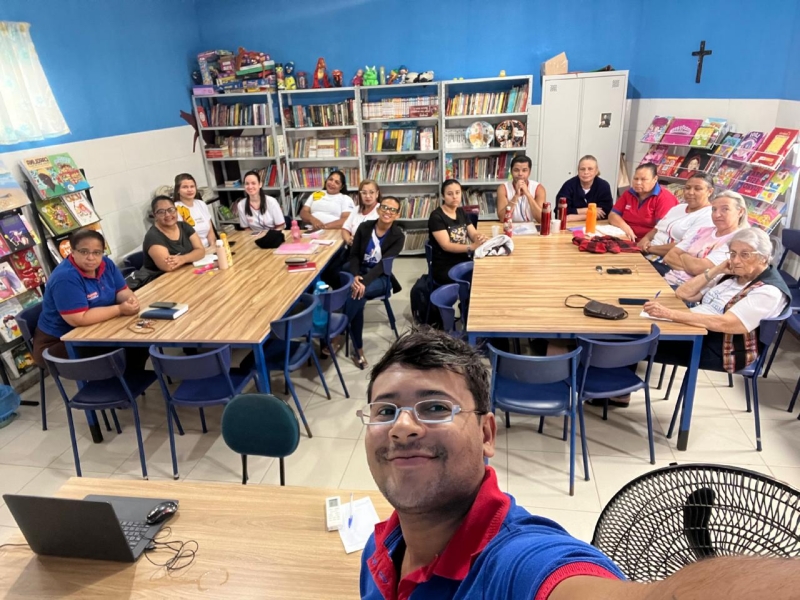 A Irmã Dircione da Glória Amorim, Coordenadora Inspetorial de Ação Social, foi quem animou o encontro, acolhendo as equipes e ressaltando a importância deste momento formativo para o fortalecimento da missão salesiana nas diversas presenças. O evento teve início com um momento de oração conduzido pela Irmã Ana Maria Gomes Cordeiro, Coordenadora de Pastoral da BMM, que convidou todos e todas a se inspirarem em Jesus, o Bom Pastor, e a viverem à maneira de Dom Bosco e Madre Mazzarello, com simplicidade, fé e compromisso com o bem.