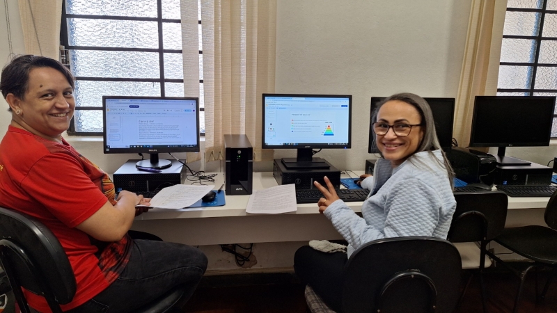 Na manhã desta segunda-feira, (26/08) as educadoras Andréia e Magda se reuniram para dar continuidade aos estudos do Módulo II, Fase 2, aulas 1, 2 e 3 referente a Formação do Projeto Educomunicação em Ação Social, abordando os conteúdos "A ludicidade como ferramenta de aprendizagem", "A diferença entre gamificação e a aprendizagem baseada em jogos" e "O triângulo da gamificação". Revisaram as atividades avaliativas da semana anterior e deram início às da Fase 2.