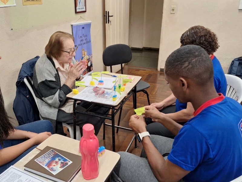 A reunião foi descontraída e leve, porém extremamente enriquecedora. A presença animada da Ir. Dircione tornou o encontro ainda mais especial, promovendo uma atmosfera de partilha e aprendizado.