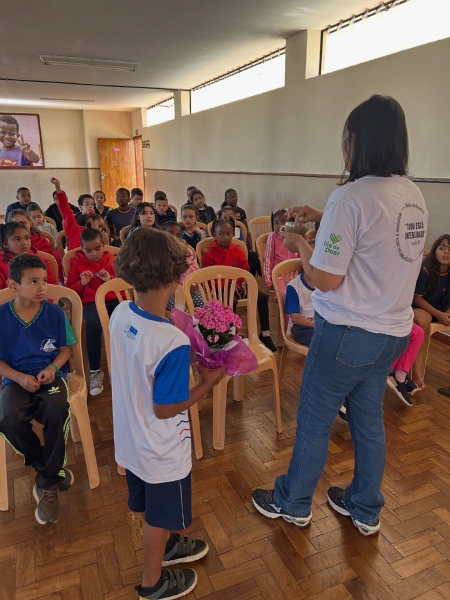 Dia 1 de outubro - Na acolhida de hoje refletimos sobre a terra e a flor. Plantamos, cuidamos, regamos… tudo na medida certa. E colhemos flores lindas. Assim também é a nossa vida: no coração plantamos coisas boas, regamos com carinho e cuidado para que nasçam sentimentos lindos e possamos enfeitar a vida dos outros com amor.