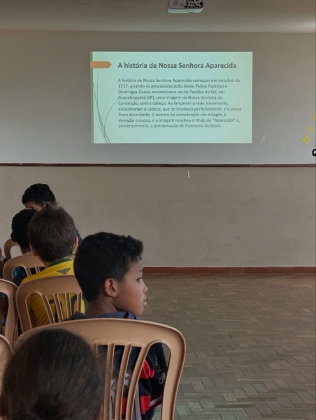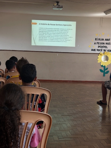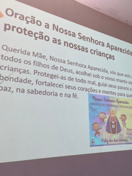 Na acolhida do dia 06 de outubro, a educadora Vanessa nos presenteou com uma linda reflexão sobre Nossa Senhora Aparecida. Em 12 de outubro celebramos o dia da Padroeira do Brasil e recordamos sua história tão especial, pedindo que ela continue abençoando nosso país e nossas famílias.