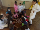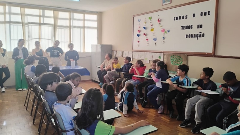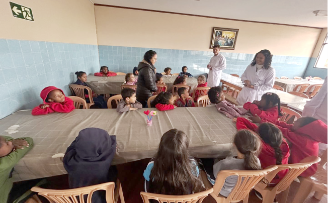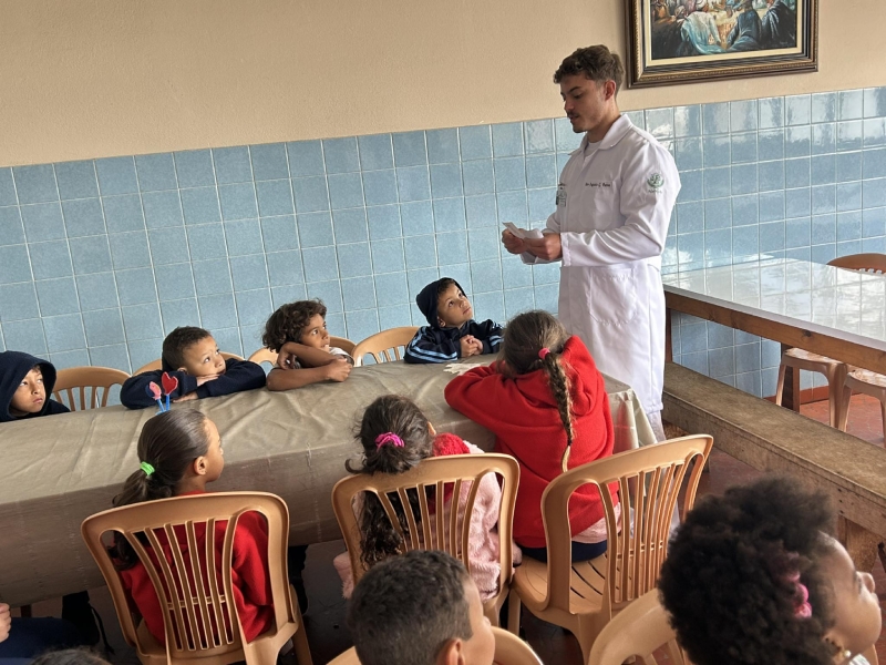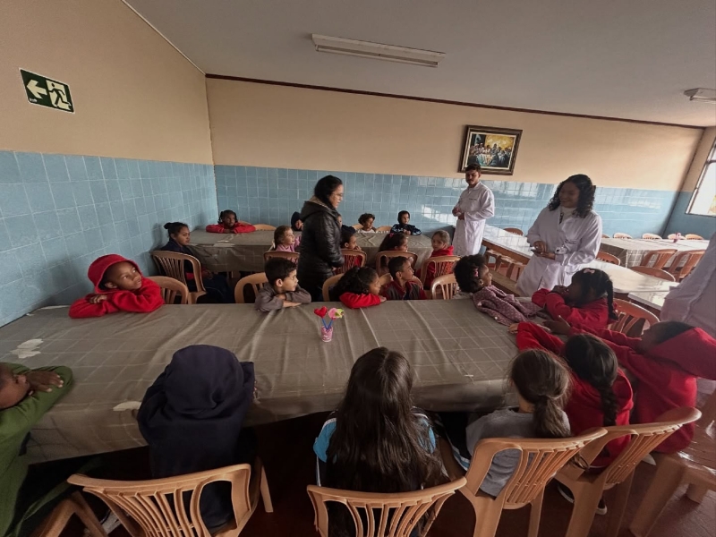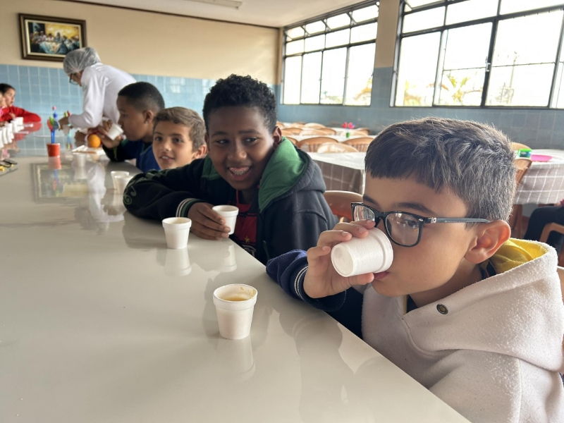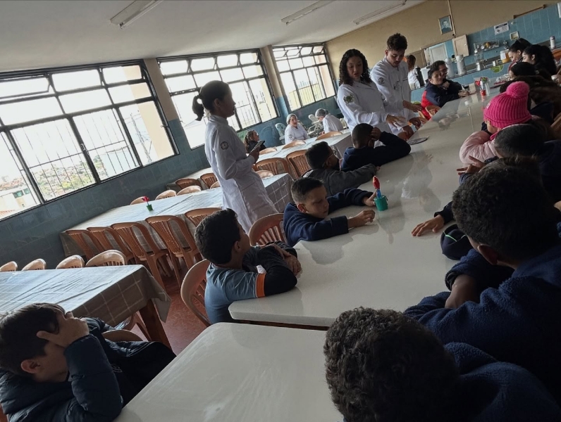 Dia 22 de outubro - Dia de Projeto de Extensão, as turmas participaram de uma experiência deliciosa e cheia de aprendizado! As crianças e adolescentes das turmas Paz e Solidariedade experimentaram suco natural e suco industrial com os olhos vendados e tentaram adivinhar qual era cada um - uma dinâmica divertida e educativa sobre sabores e escolhas saudáveis. Já as turmas Alegria e Gratidão participaram de uma atividade com cartinhas e perguntas sobre alimentação, estimulando a reflexão e o conhecimento. Para finalizar com chave de ouro, saborearam um bolo nutritivo preparado com muito carinho pelos acadêmicos de Nutrição.