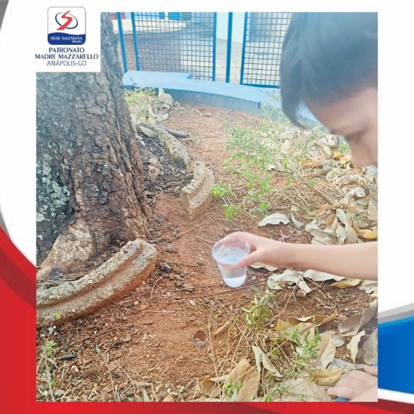 Os alunos derramaram individualmente um pouco e muita água no solo, e perceberam que essa água era totalmente absorvida. E as dúvidas começaram....